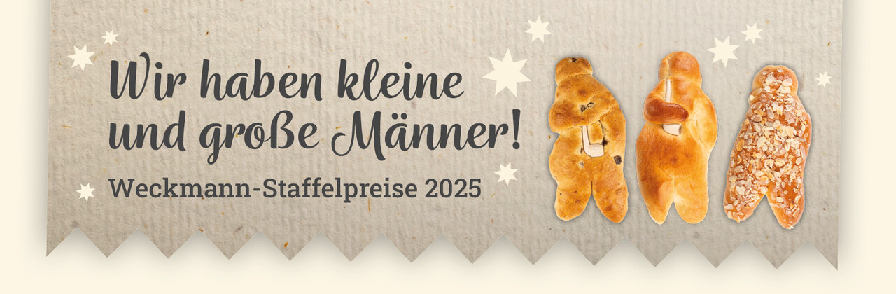 - Wir nehmen Ihre Vorbestellung für Weckmänner gerne mit einem Vorlauf von zwei Werktagen entgegen.