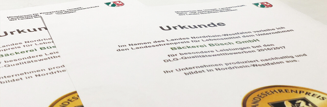 Das Siegel „SEHR GUT“ erhalten nur Backwaren, die im Test die volle Punktzahl erreicht haben. Besonders freuen wir uns auch darüber, dass wir bereits mehrfach vom amtierenden Minister bzw. der amtierenden Ministerin mit dem Landesehrenpreis für Lebensmittel des Landes NRW ausgezeichnet worden sind.