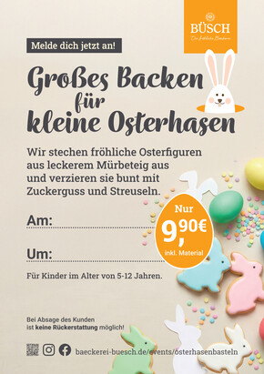 31.03.2026 Bäckerei Büsch, Holzheimer Weg 44, Neuss, 15:00 + 17:00 Uhr